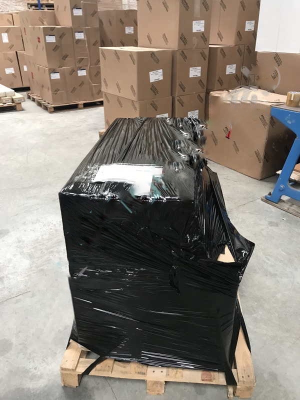 Así es como recibirás los pedidos de muebles de baño, perfectamente embalados y plastificados, para evitar roturas, si la agencia te lo entrega despaletizado, hazlo constar en el albarán de entrega y revisa toda la mercancía antes de 24 horas.