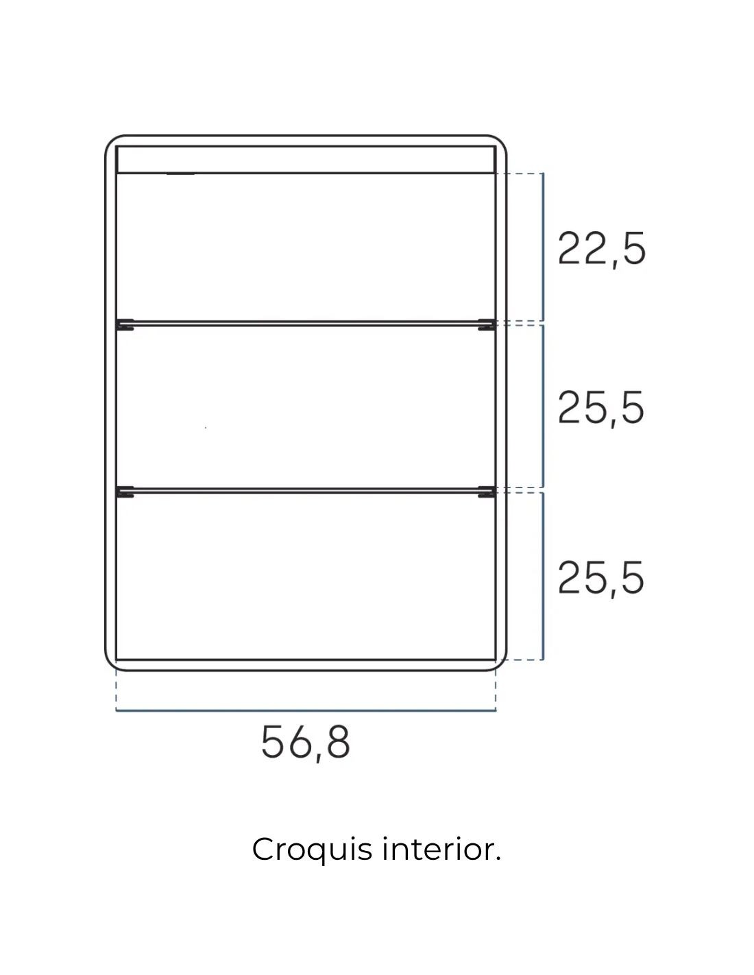 - Con 3 baldas interiores: 2 de cristal.