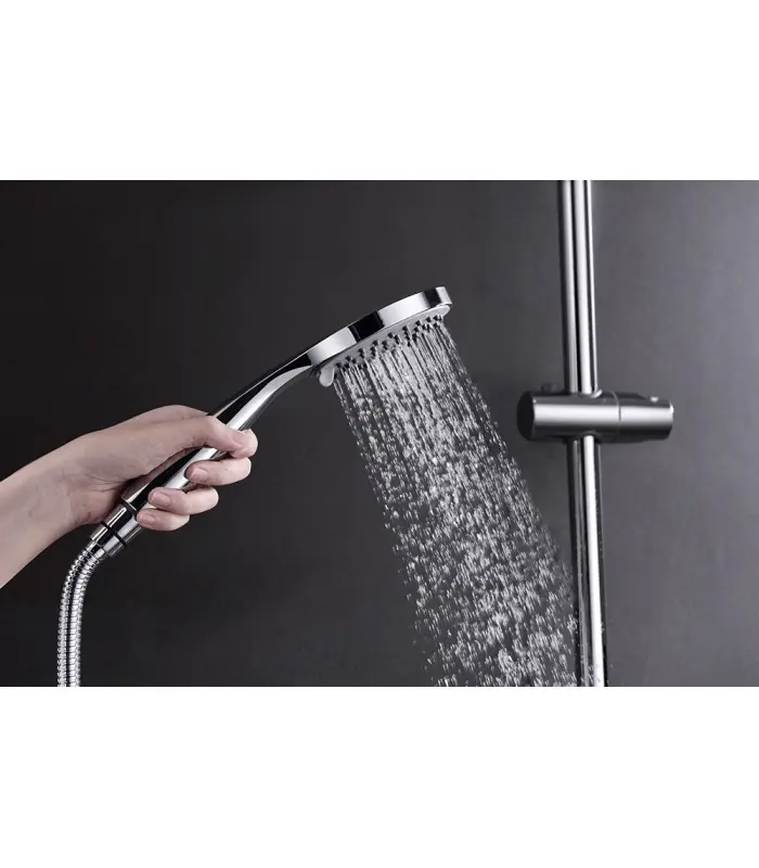 Este completo sistema de ducha destaca por su funcionalidad y estética, adaptándose a la perfección a cualquier estilo de cuarto de baño en España: