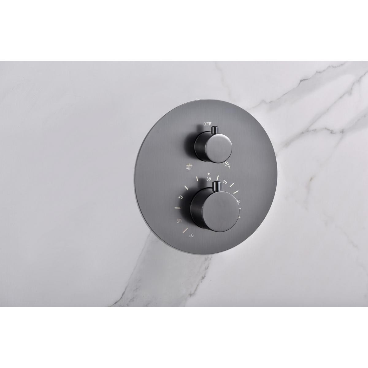 Grifería termostática de latón acabado black gun metal de 2 vías.