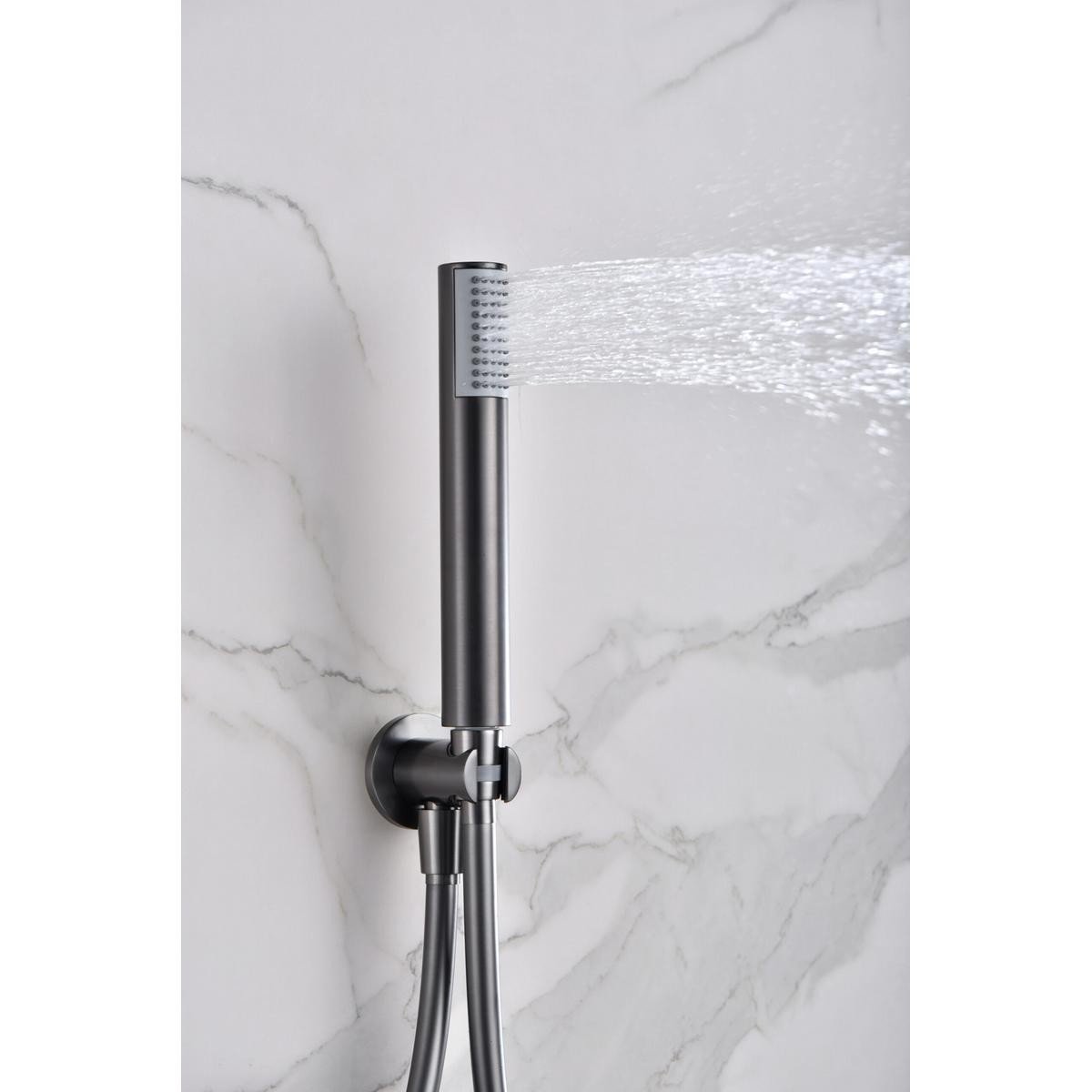 Soporte mango de ducha acabado black gun metal con salida agua pared.