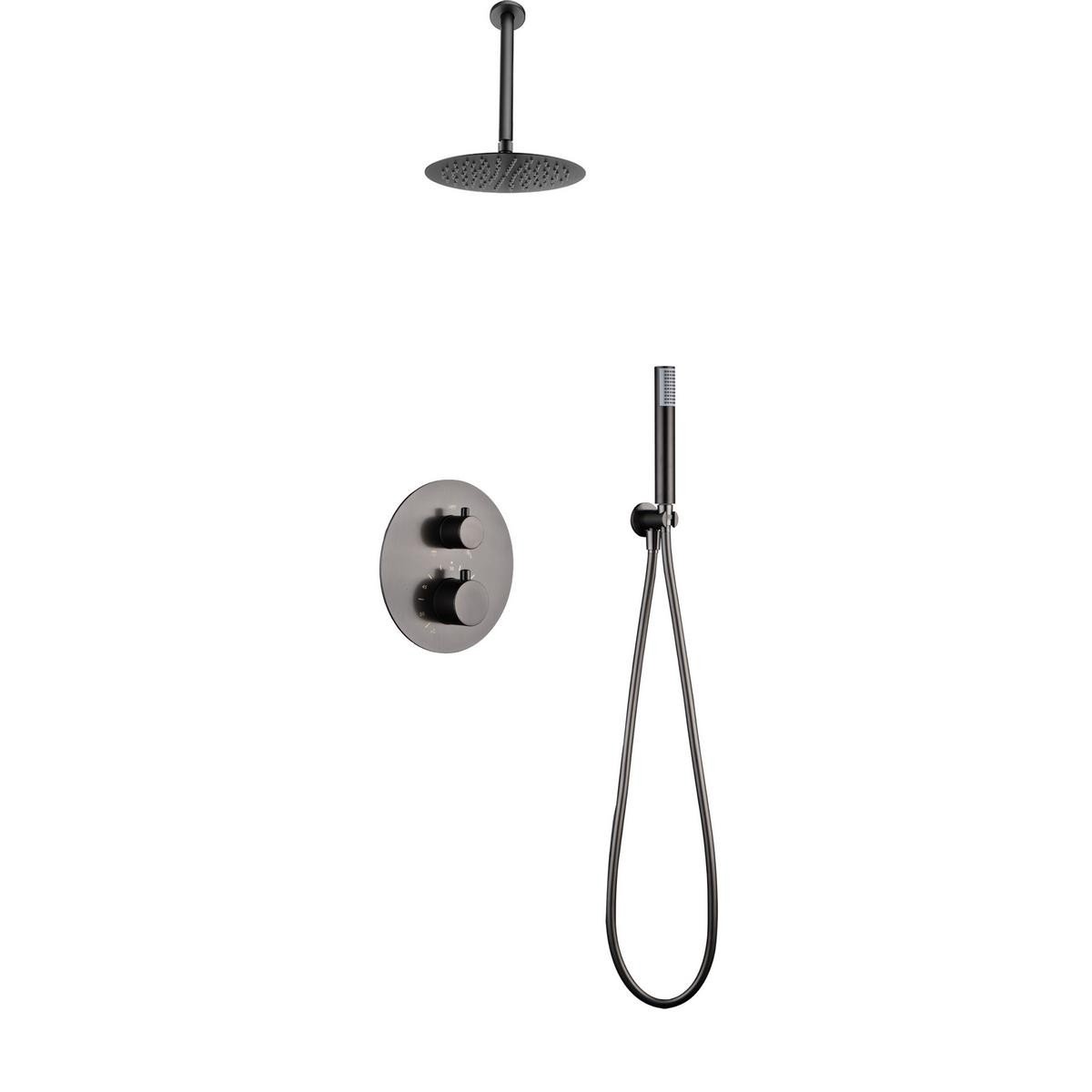 Rociador de acero inox. S.304 Ø25 cm, extraplano, acabado black gun metal y antical.