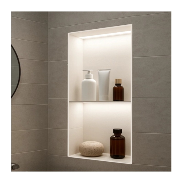 Las hornacinas se usan para mejoran la estética y ordenación del baño.