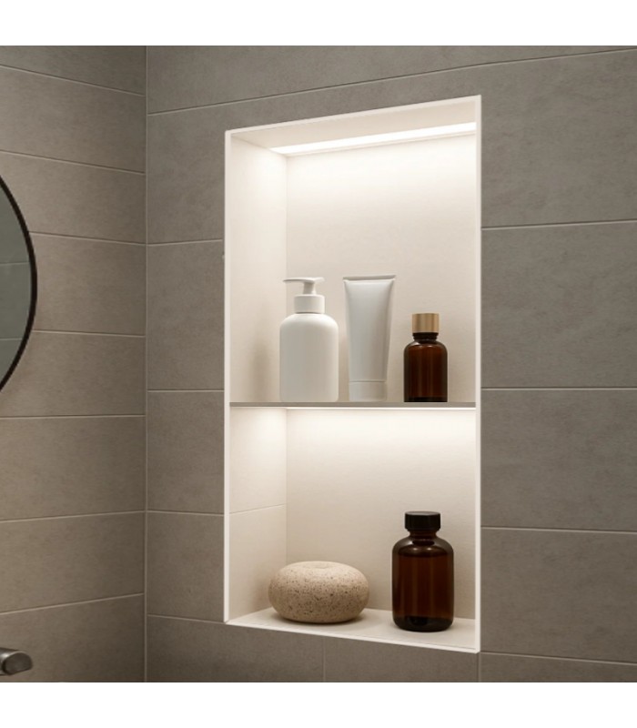 Hornacina para baño vertical con dos estantes blanca con luz led Marshall