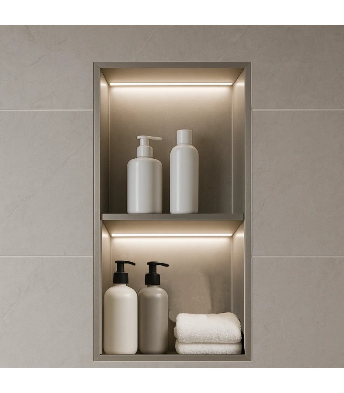 Hornacina para baño vertical con dos estantes níquel con luz led Marshall