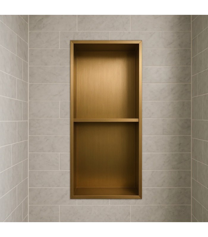 Hornacina para baño vertical con dos estantes Oro rosa cepillado Artic de Medimex.