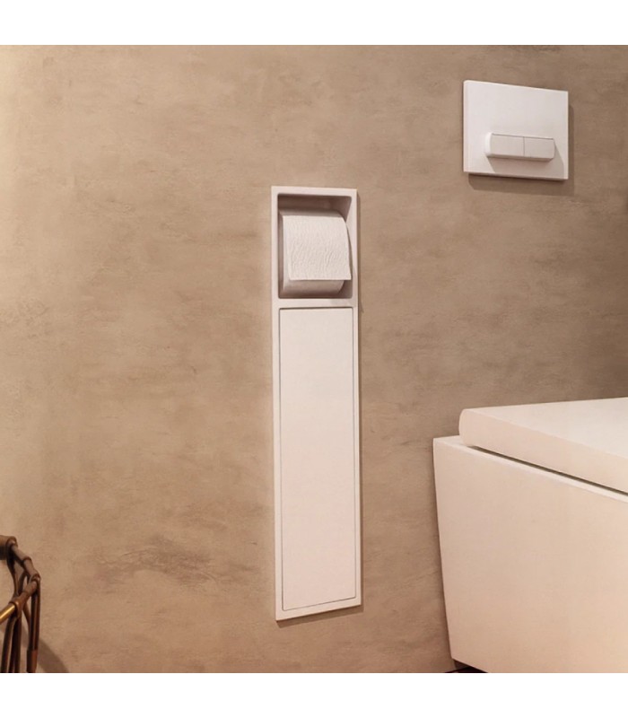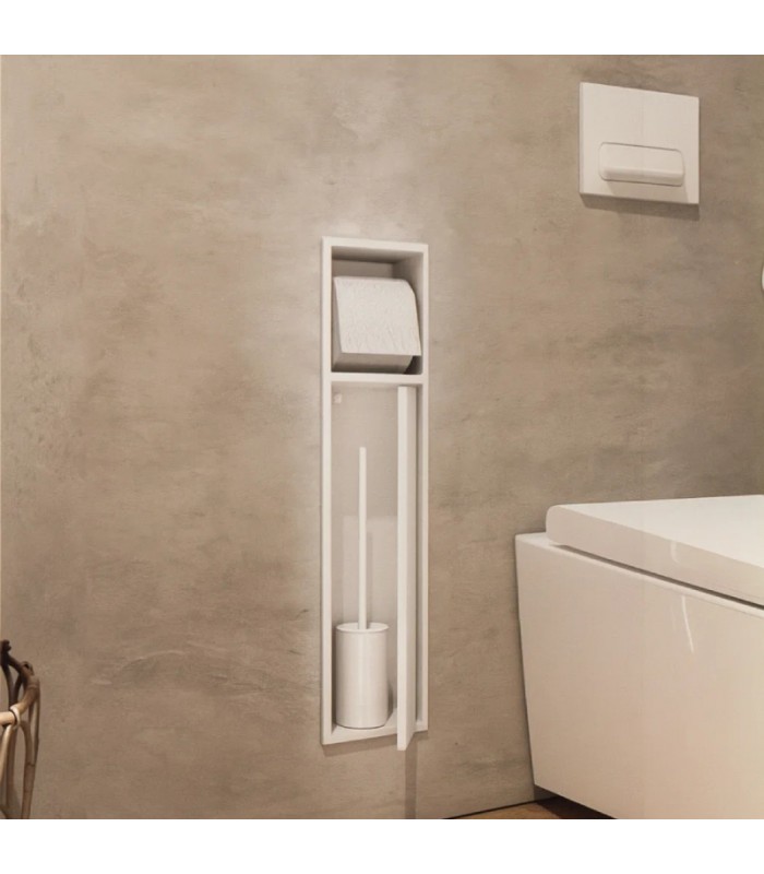 Hornacina vertical con escobillero empotrado y portarrollos Blanca Egean