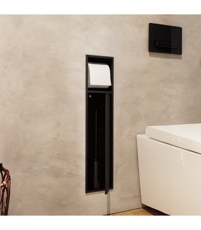 Hornacina vertical con escobillero empotrado y portarrollos Negra Egean