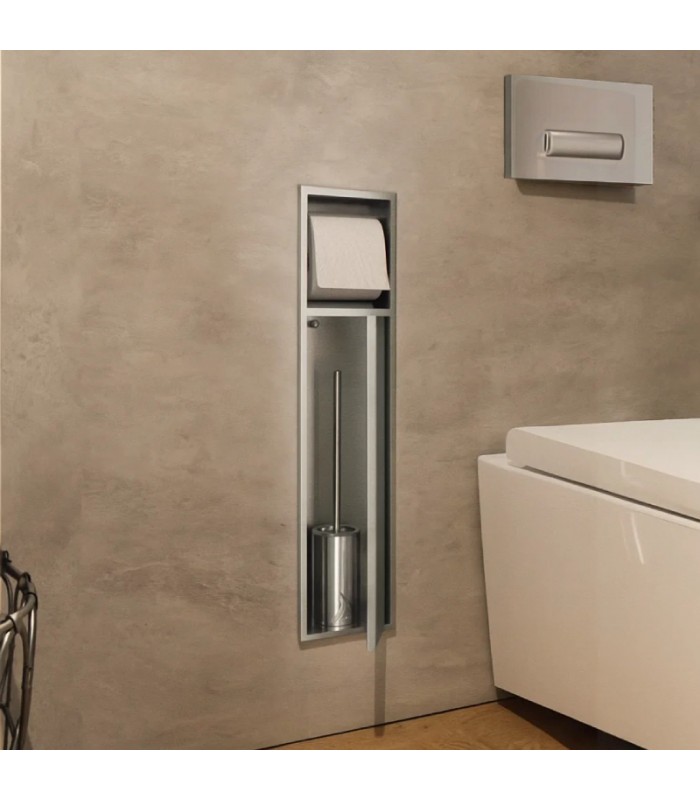Hornacina vertical con escobillero empotrado y portarrollos Níquel Egean