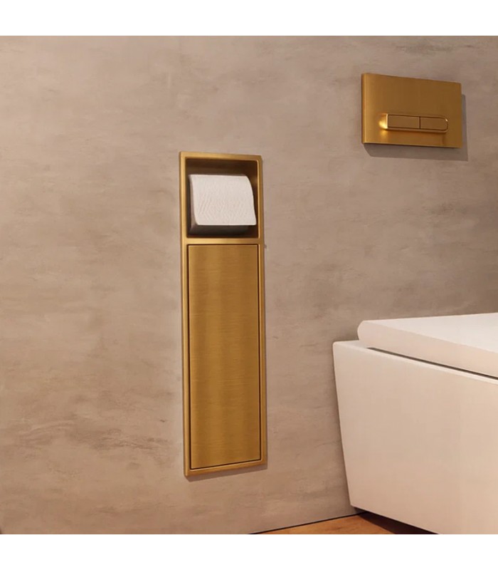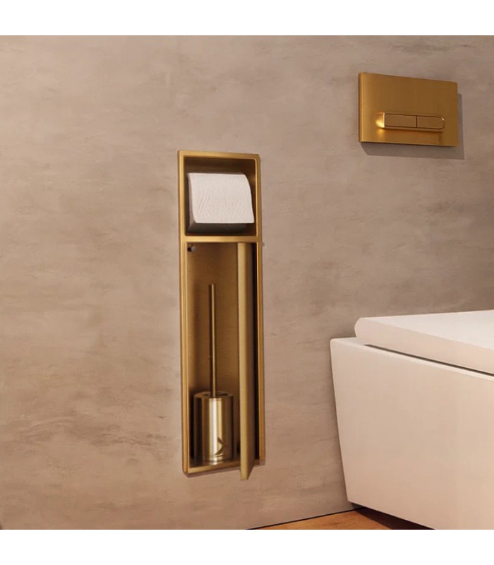 Hornacina vertical con escobillero empotrado y portarrollos oro cepillado Egean