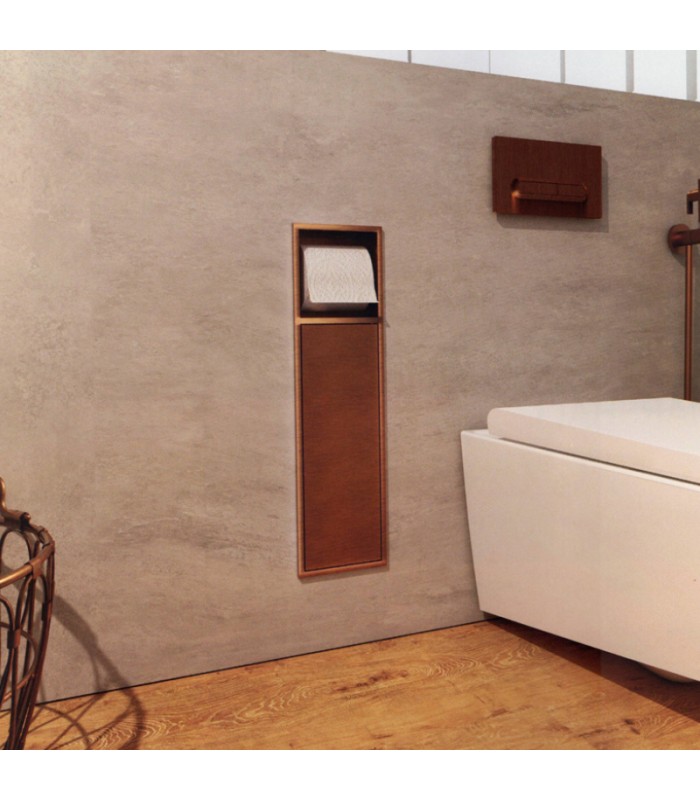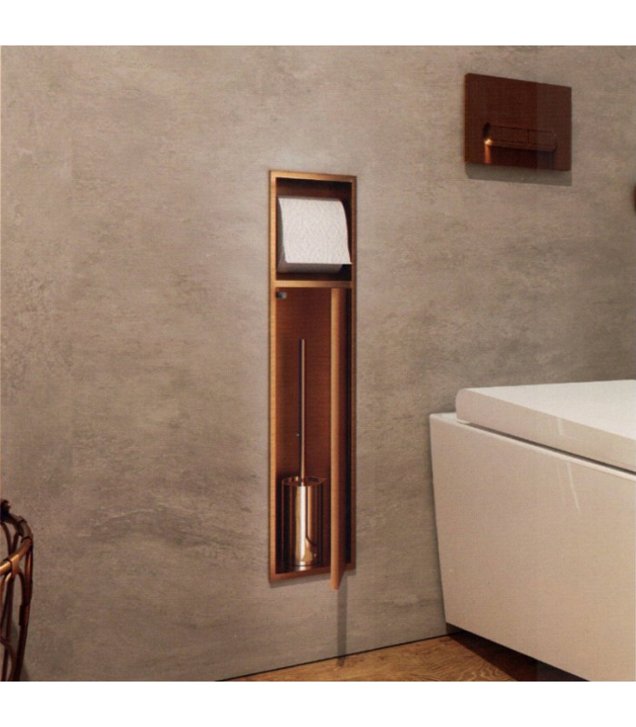 Hornacina vertical con escobillero empotrado y portarrollos oro rosa cepillado Egean