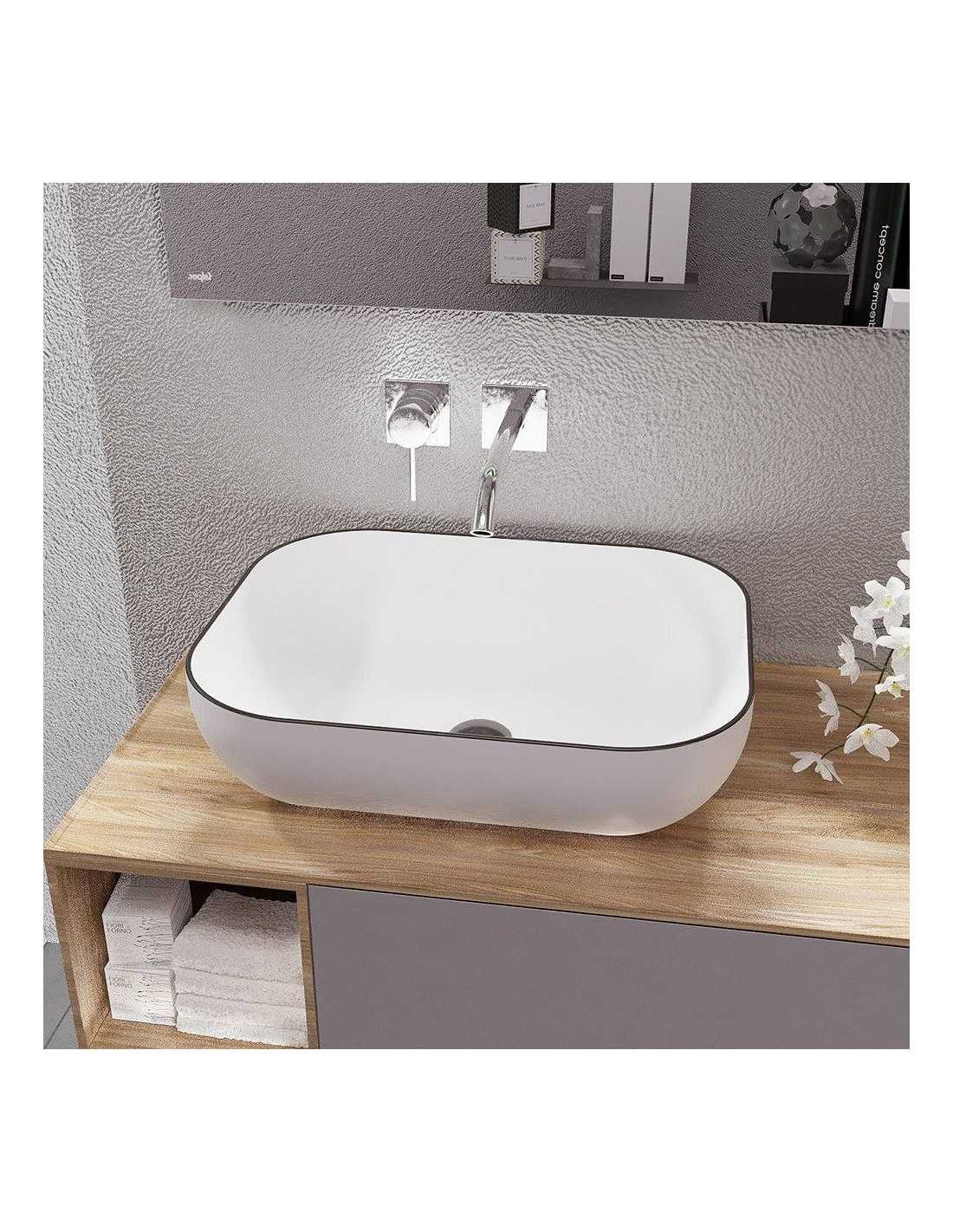 Lavabo sobre encimera un seno sin rebosadero, fabricado en cerámica color blanco, sus medidas de 51cm Ancho x 40.5cm Fondo x 14.5cm Alto.
