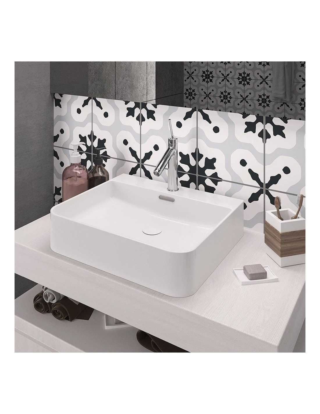 Lavabo Porcelana Sil Blanco Brillo Con Rebosadero 50×42 cm