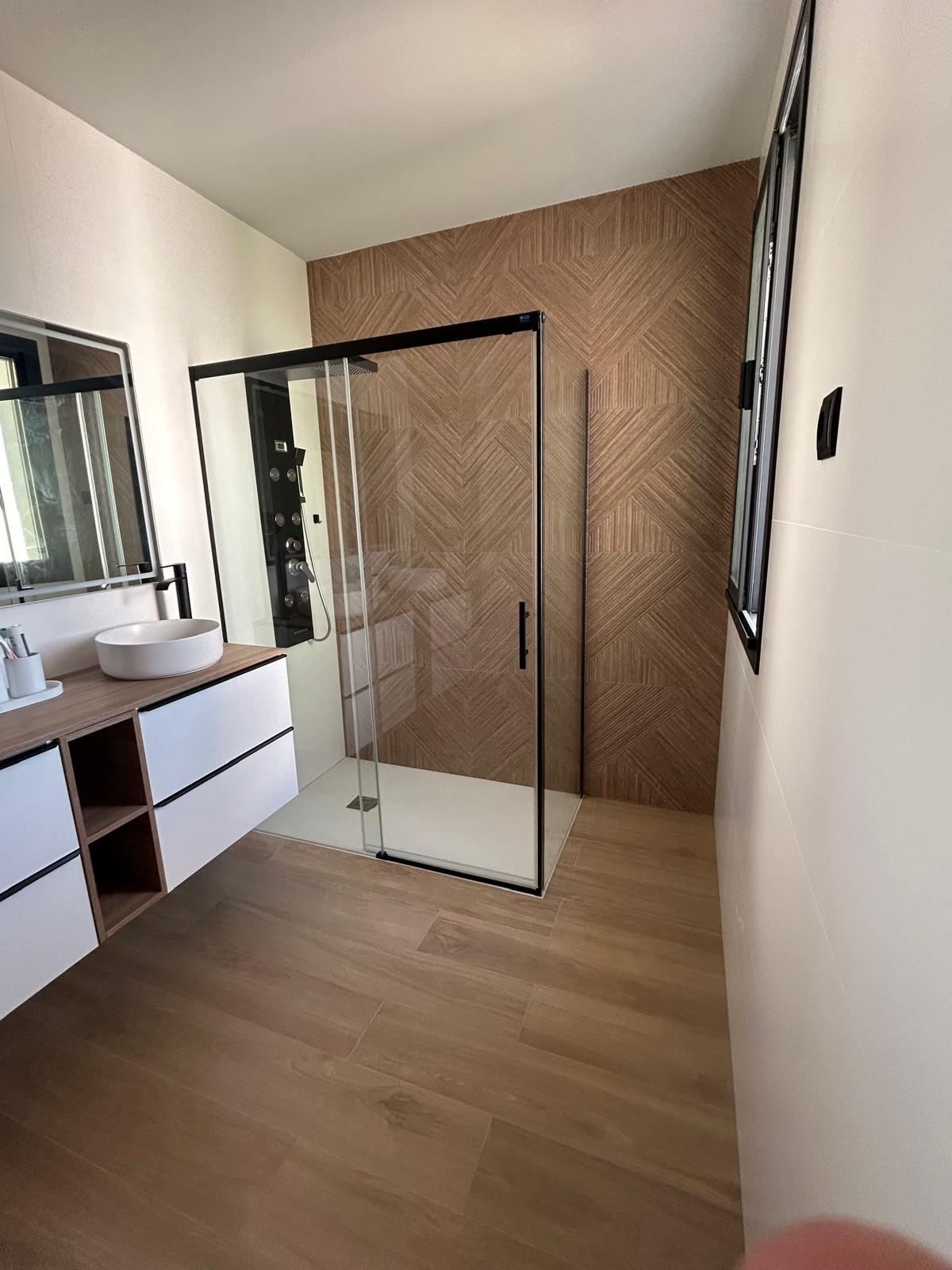 | Tipo de mampara | Frontal 1 fijo + 1 corredera + 1 lateral fijo |