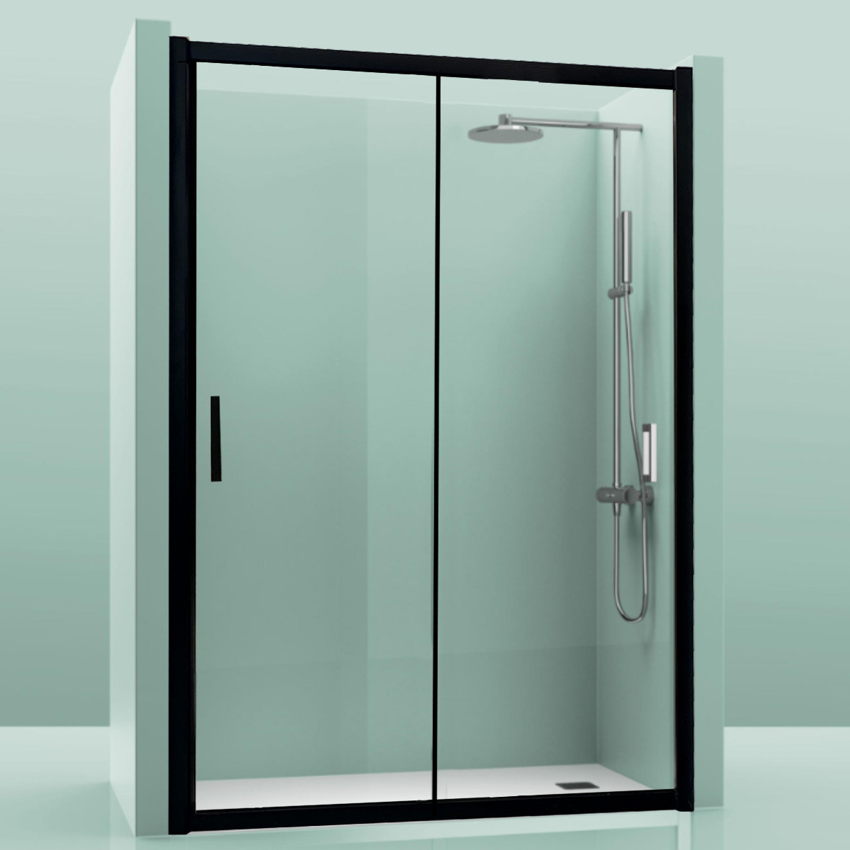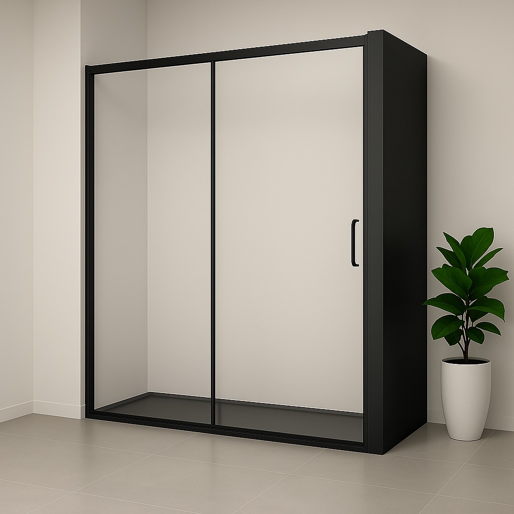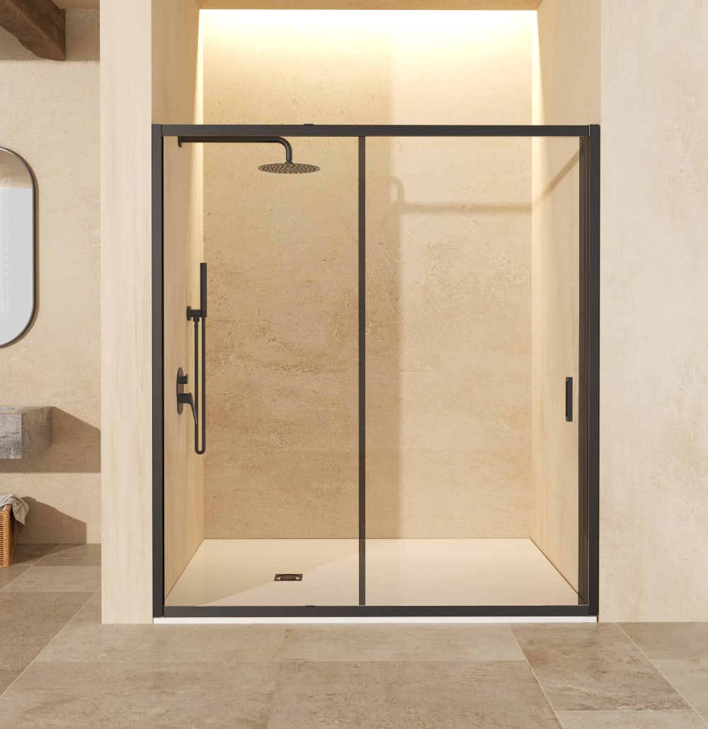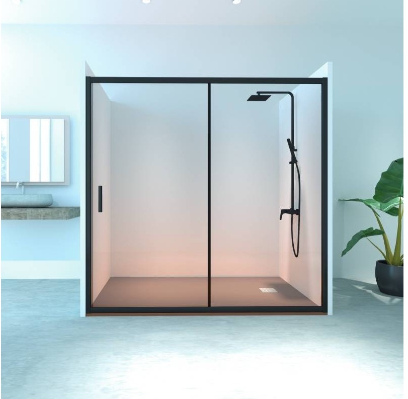 Mampara ducha frontal fijo + corredera AGATA 100 perfiles negros.