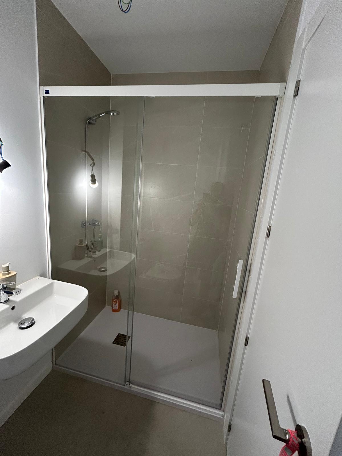 | Tipo de mampara | Frontal 1 fijo + 1 puerta corredera |