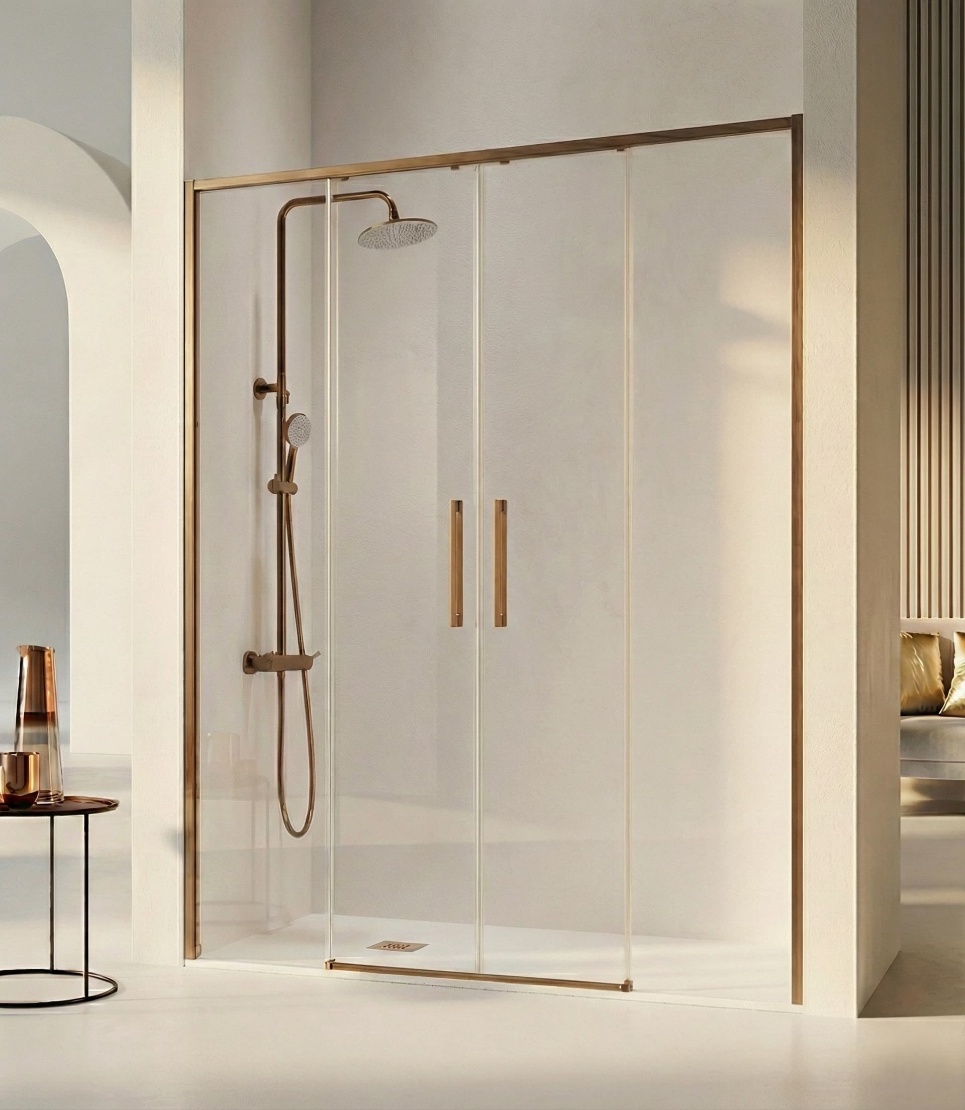 Mampara frontal 2 fijos 2 correderas DELTA de Kassandra bronce cepillado