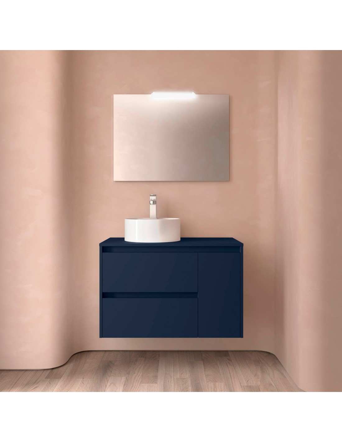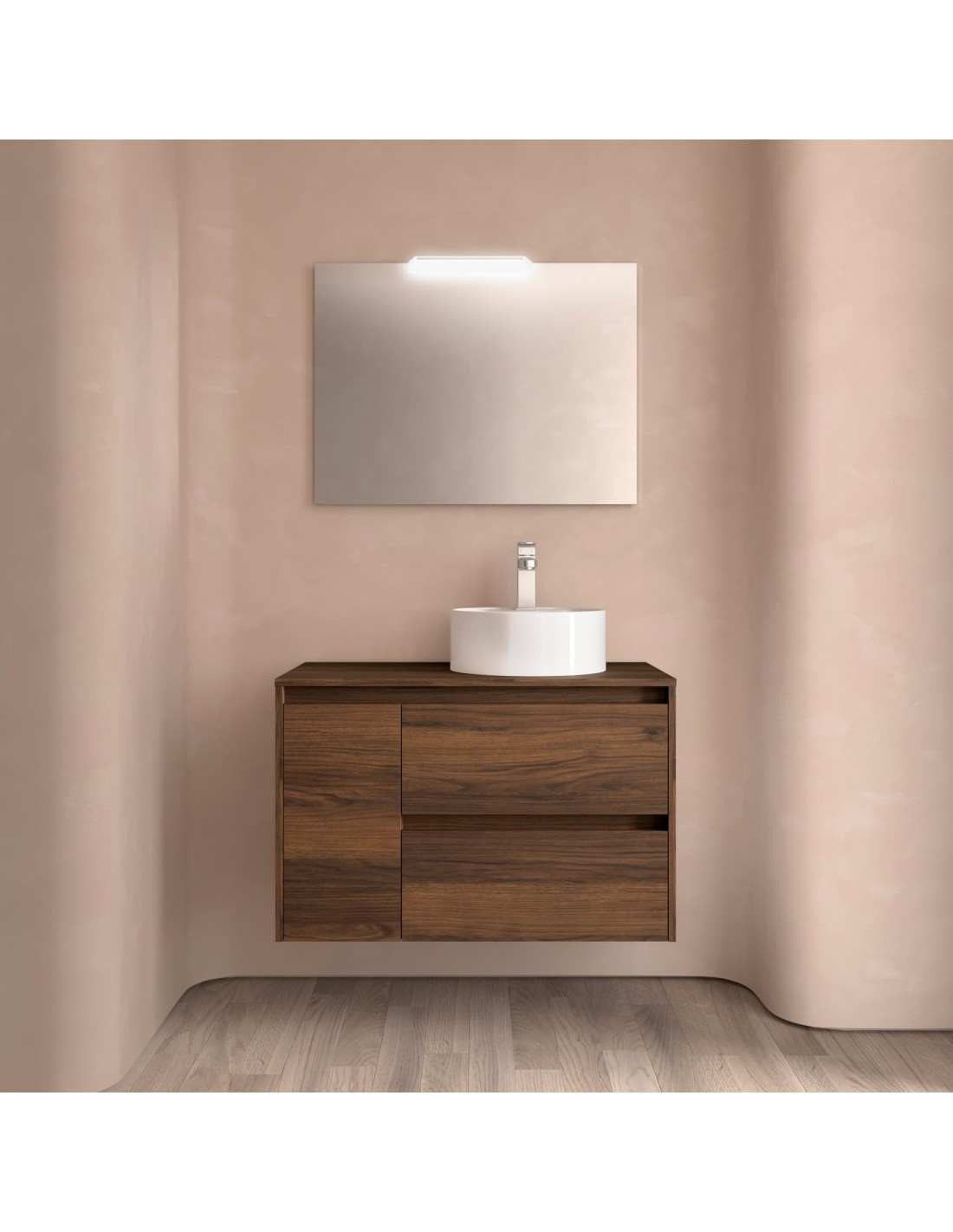 Instalación suspendida a pared, con 2 cajones, y lavabo sobre encimera Etna.