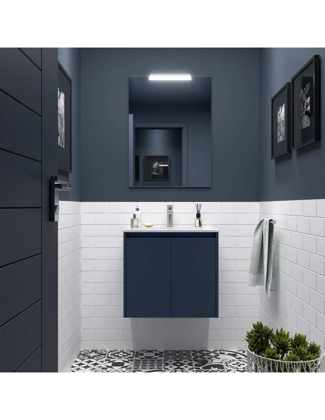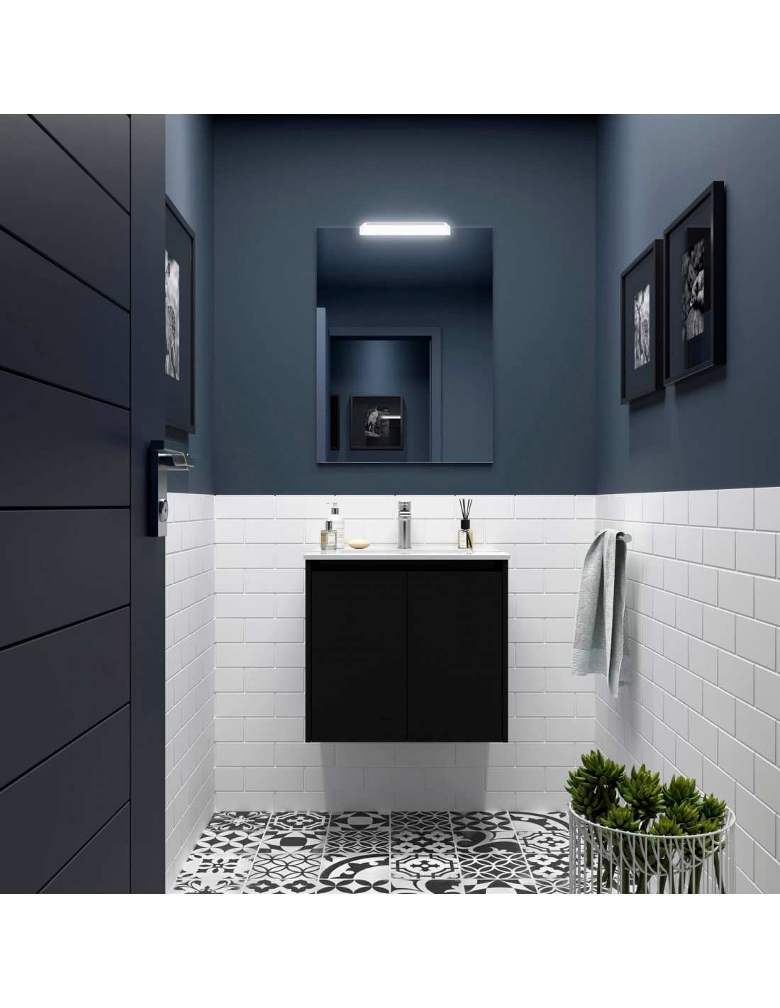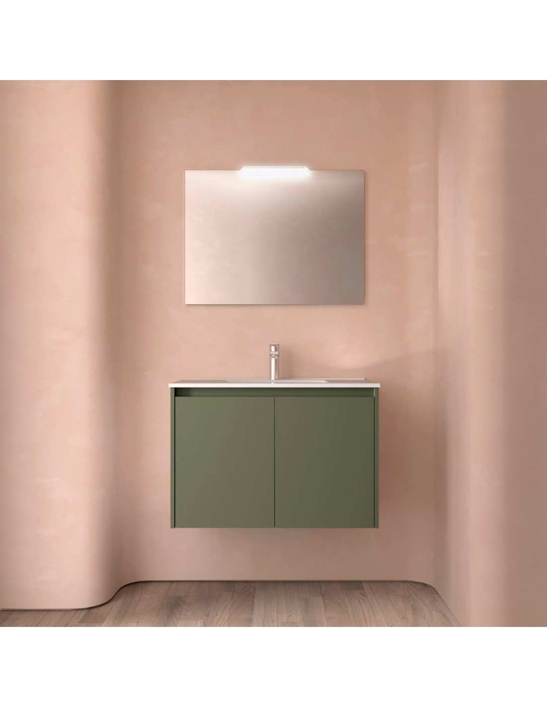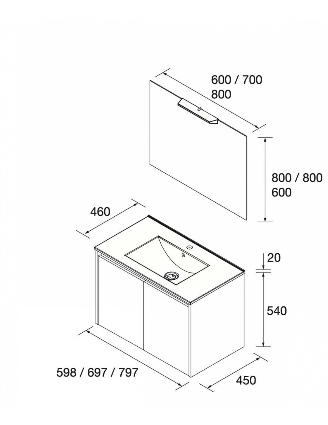 El conjunto está formado por mueble y lavabo y opcionalmente espejo y aplique LED.