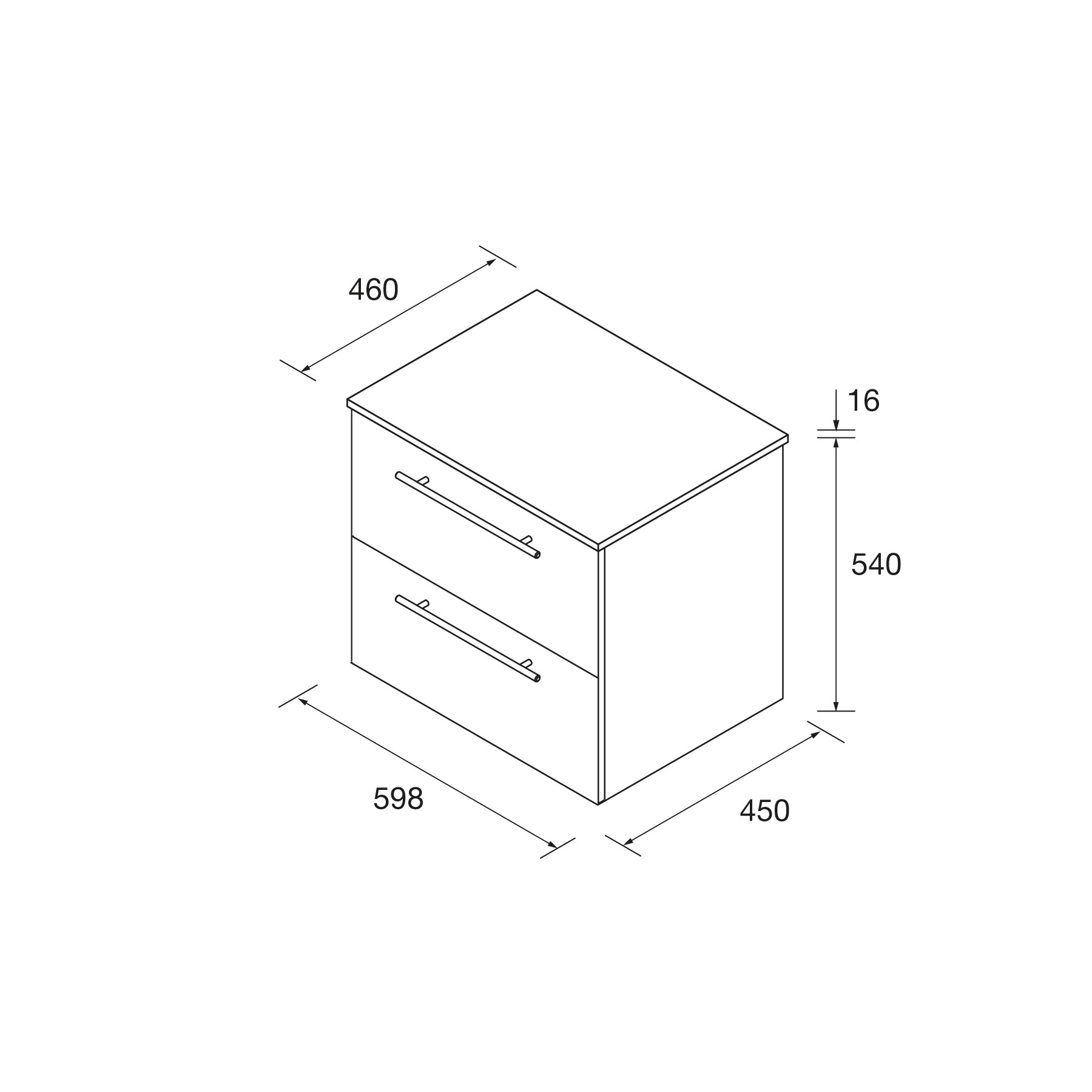 Configuración y Tecnología Este conjunto está compuesto por el mueble suspendido de 2 cajones y tapa incluida.