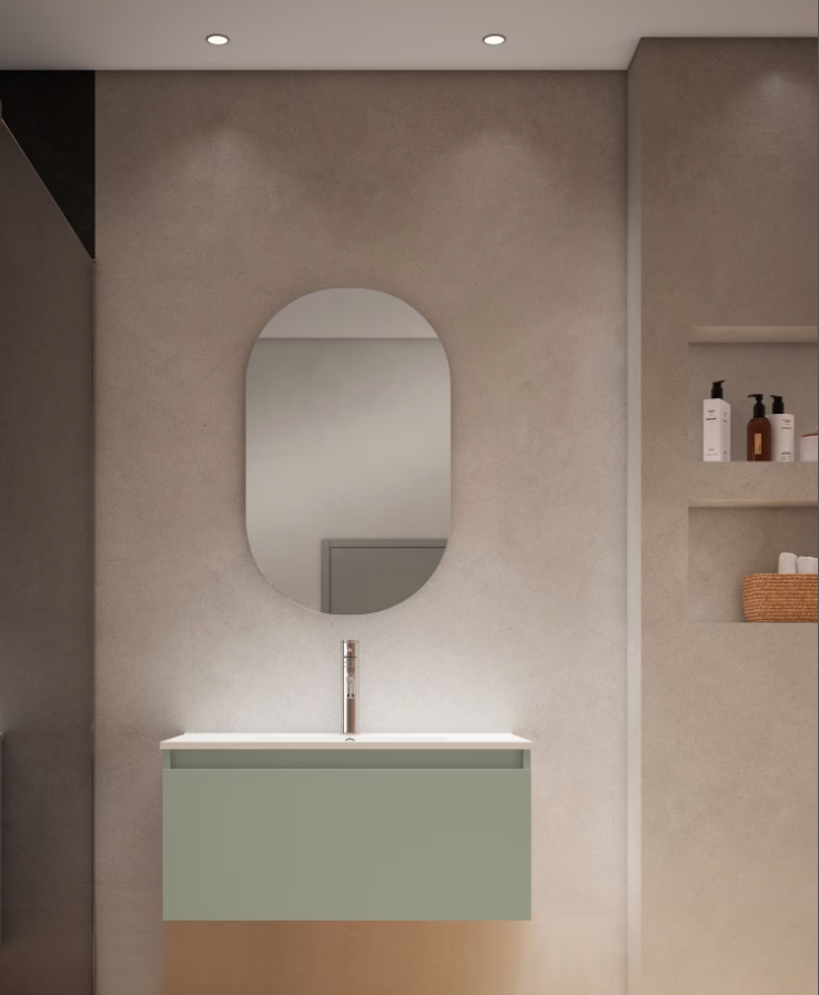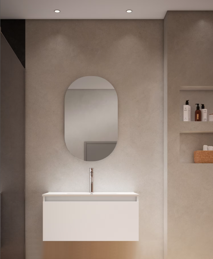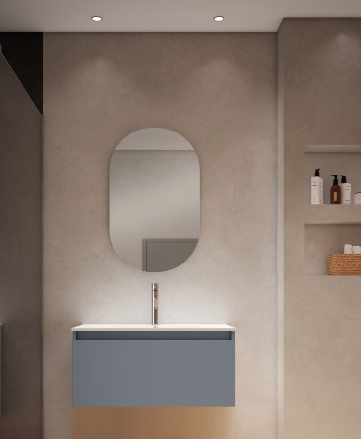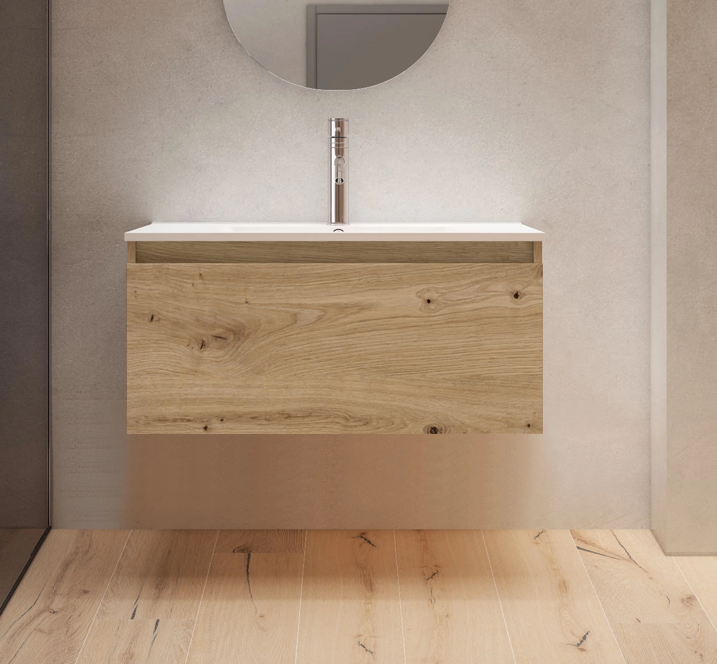 - Tipología: Mueble suspendido (flotante) que aporta una sensación de amplitud y facilita la limpieza del espacio.
