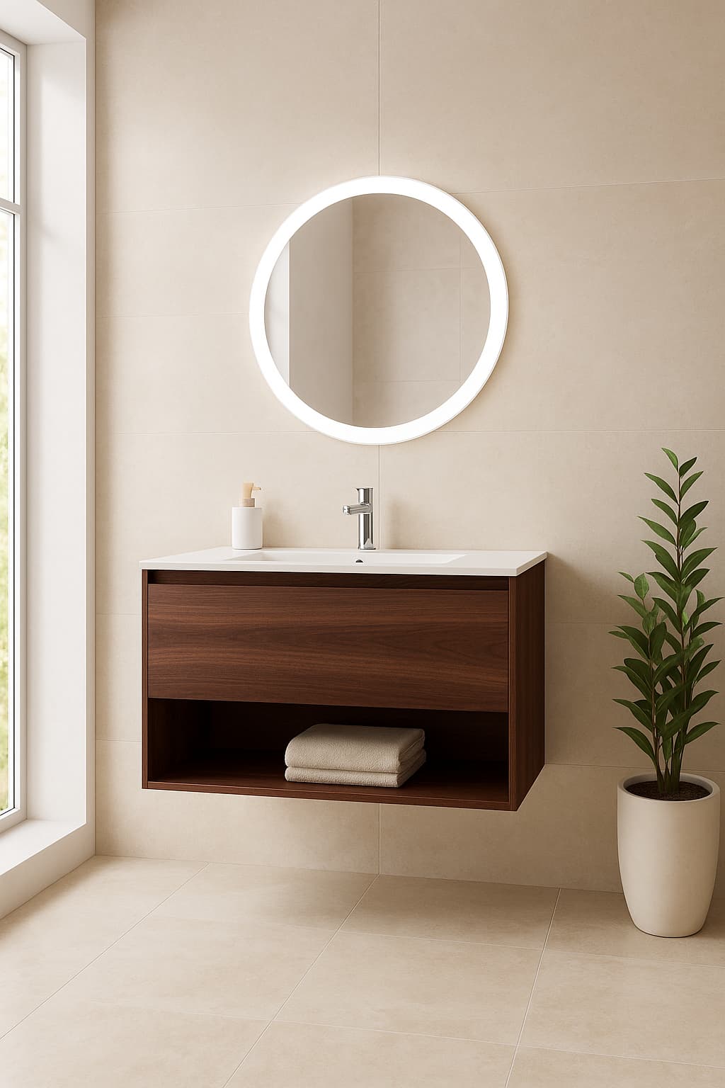- Tipología: Mueble suspendido (flotante), lo que facilita el acceso al suelo para la limpieza.