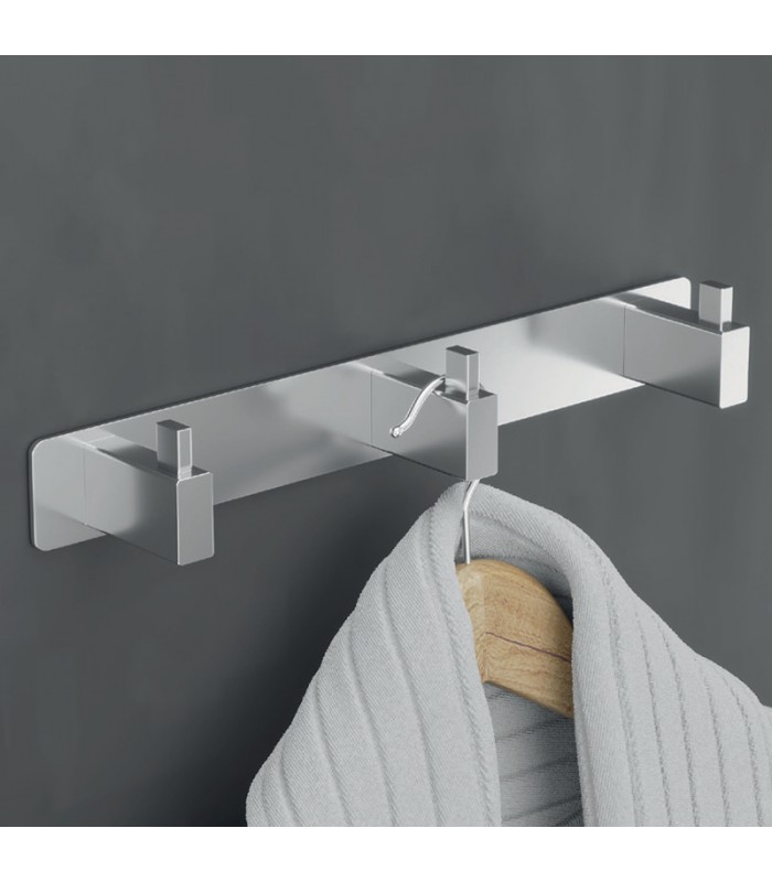 Percha triple en acero inoxidable.