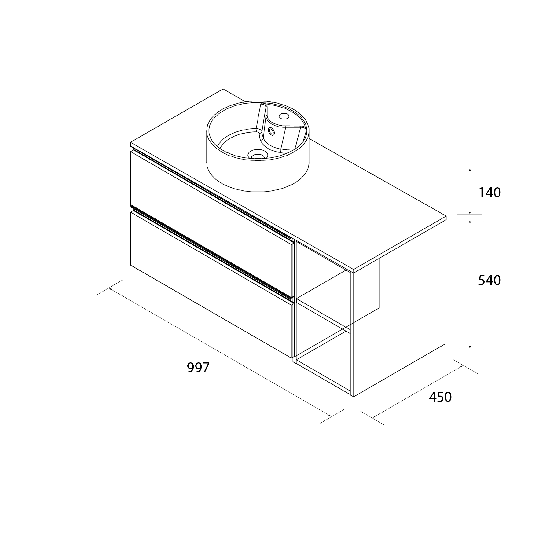 Mueble: 1000 × 540 × 450 mm (ancho × alto × fondo)