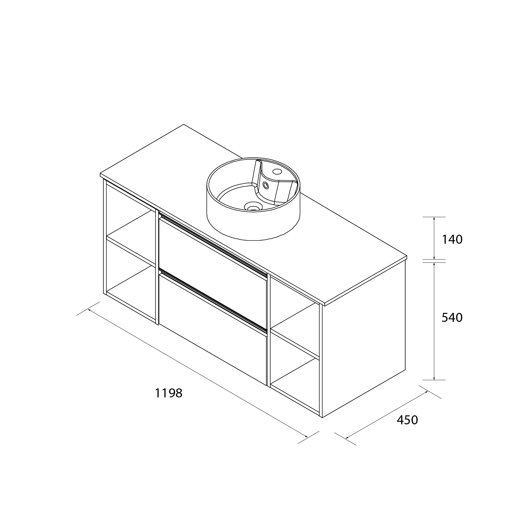 Mueble: 1200 mm (ancho) × 540 mm (alto) × 450 mm (fondo)