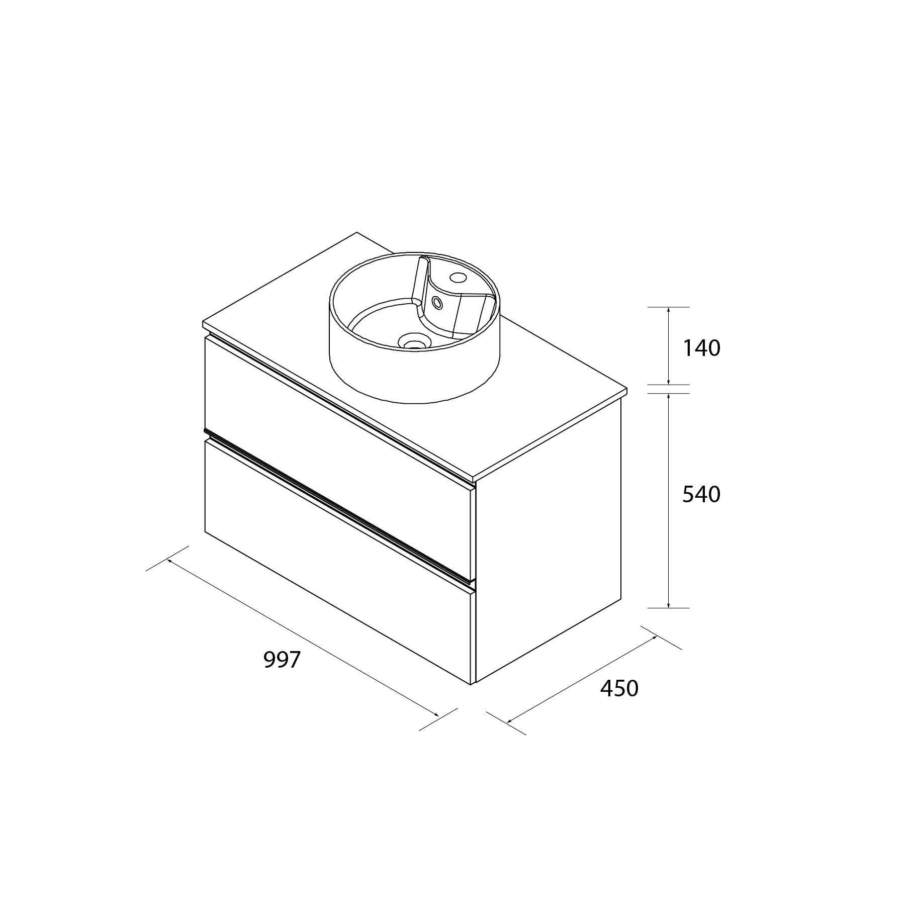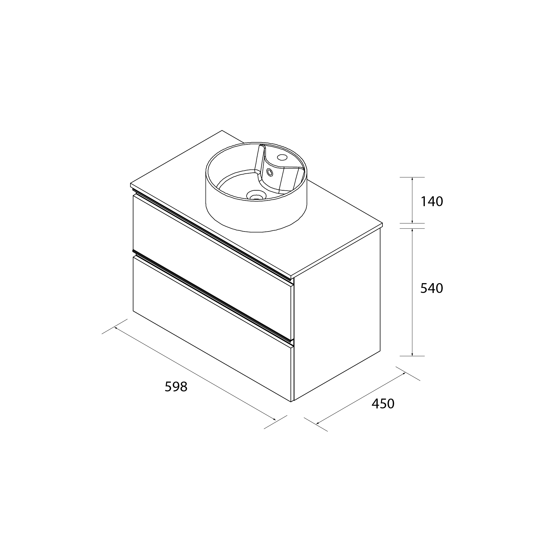 Mueble: 600 / 700 / 800 / 1000 / 1200 mm (ancho) × 540 mm (alto) × 450 mm (fondo)