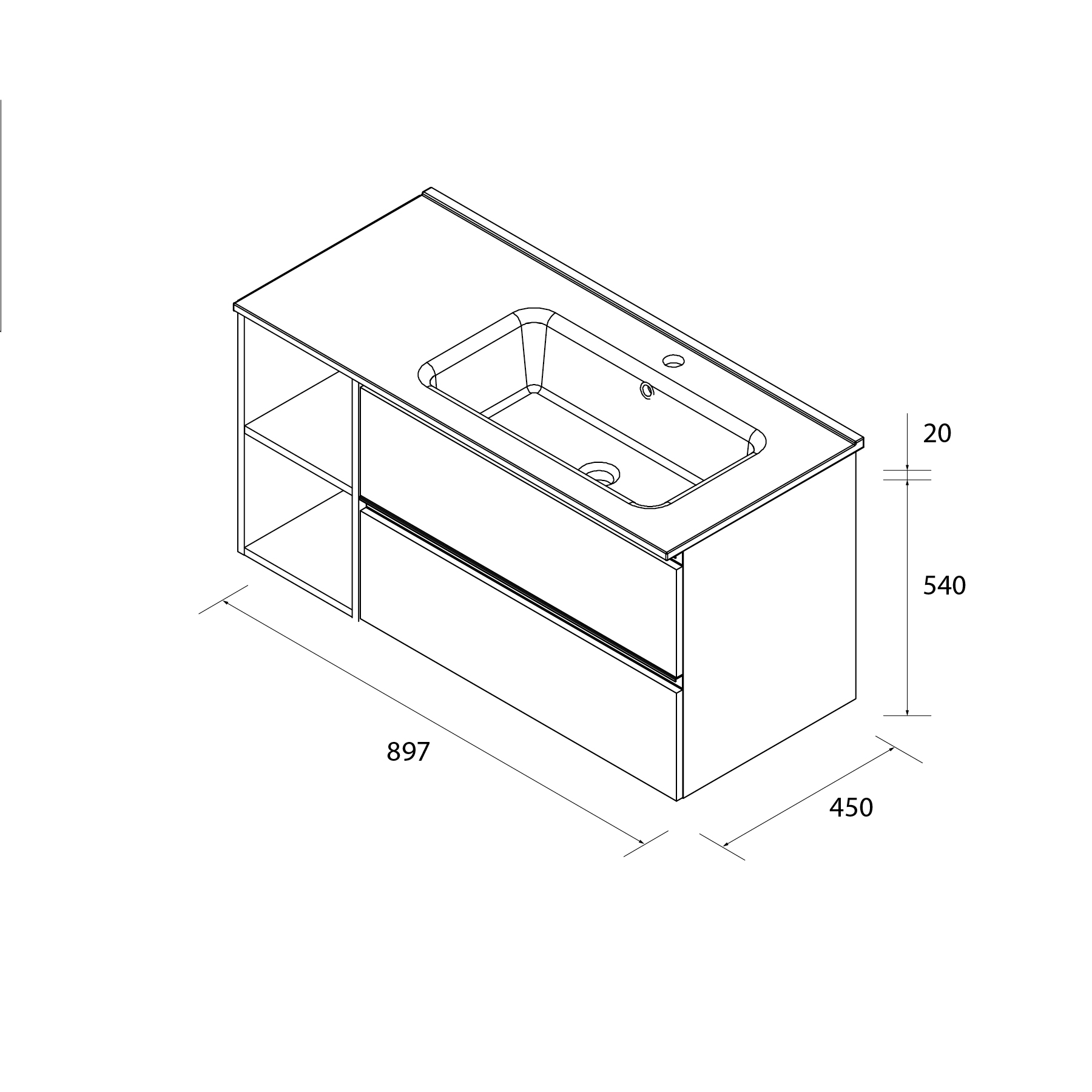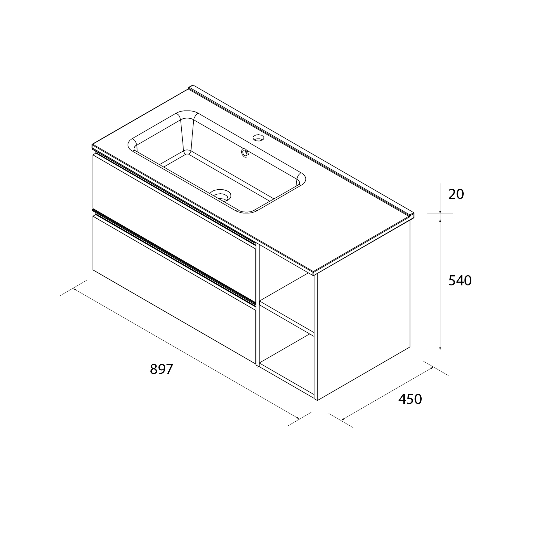 Mueble: 900 × 540 × 450 mm (ancho × alto × fondo)