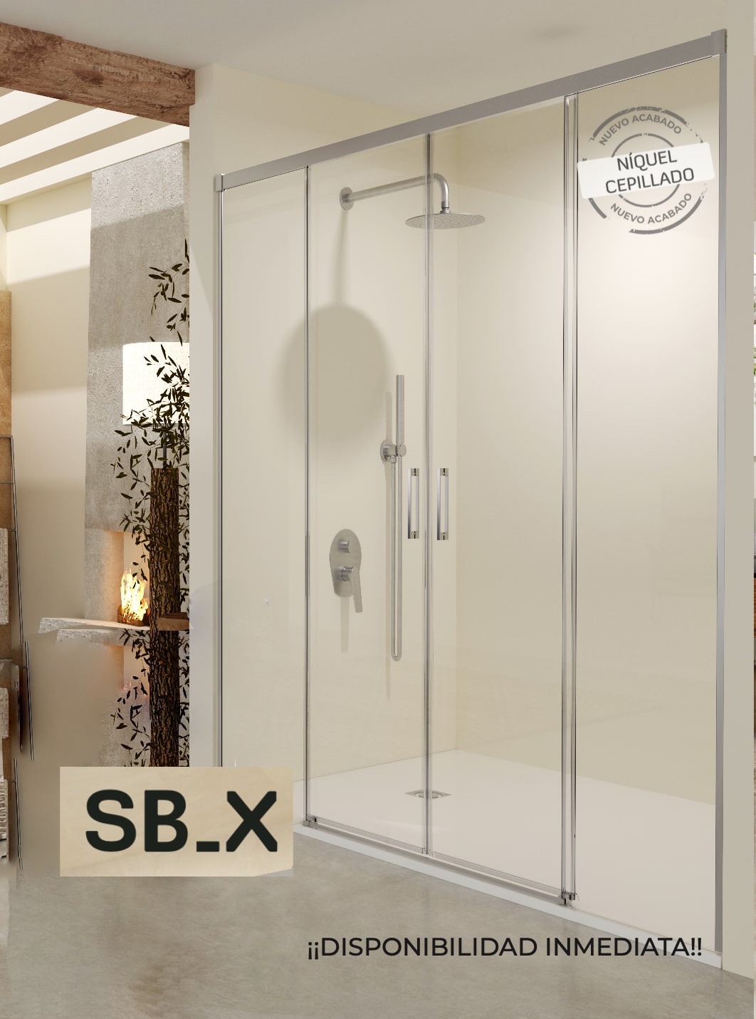 Mampara de ducha frontal corredera Stylo SBX 2F+2C Niquel cepillado